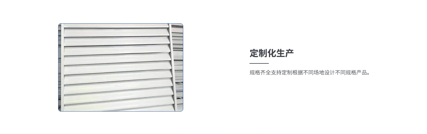該百葉窗具有結構簡單,防雨、防風性能好,重量輕、安裝方便等優點, 它采用進口優質執行器驅動元件,調節平穩、可靠無噪音。 可廣泛用于發電、冶金、化工等廠房和體育館、影劇院 及其它大型建筑物作避雨、通風、調節氣流之用。