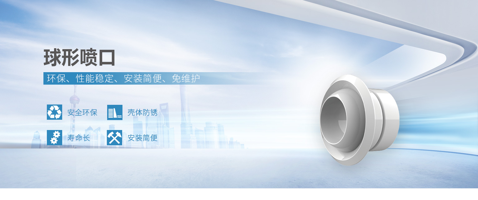 球形噴口可以分為氣動或電動的控制系統。由于采用最佳的空氣動力學噴口結構設計,達到了理想的噪聲的控制,又由于它的高品質的外形設計,可用于音樂廳、劇場、博物館等高級場所 普通開關型:增加6組鋁合金葉片,通過手動調節葉片來調節風量大小 電動執行機構型:220V電動控制調節葉片來調節風量大小。